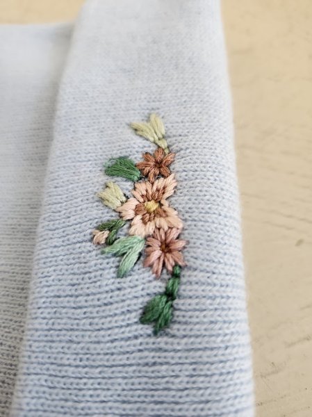 This one-of-a-kind boho hat has been upcycled with hand embroidered details.