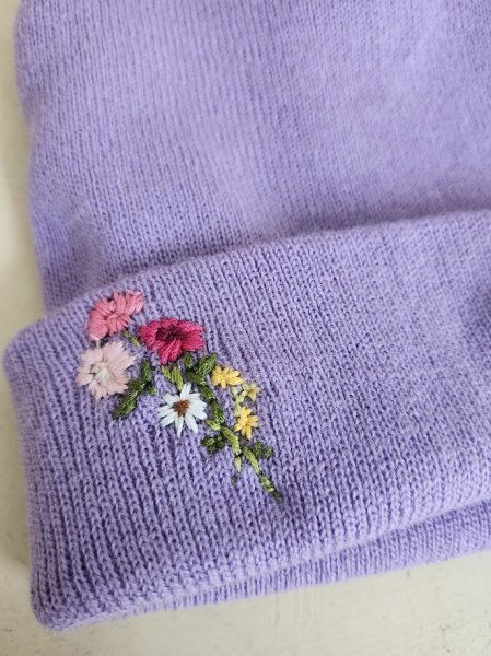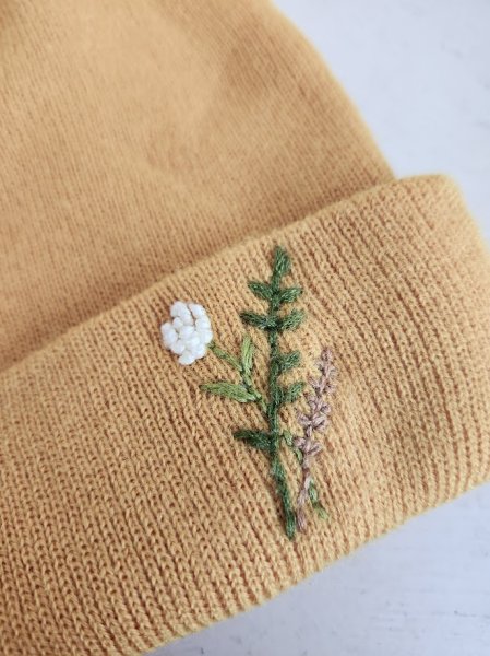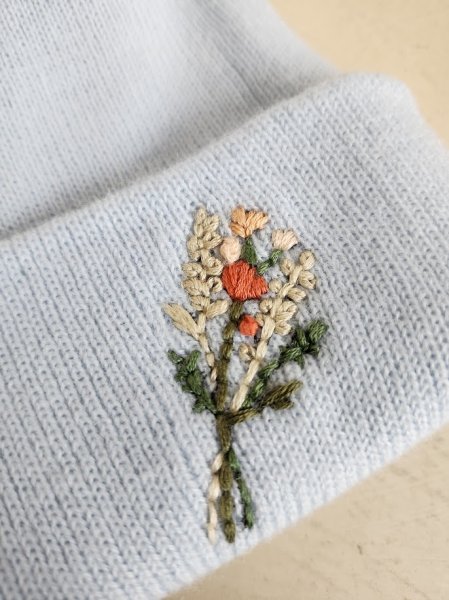Hand-embroidered details elevate this upcycled beanie. No two are alike.