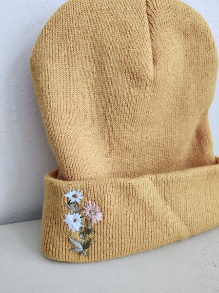 Hand-embroidered details elevate this beanie. No two are alike.