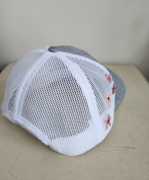 This one-of-a-kind boho hat has been upcycled with hand embroidered details.